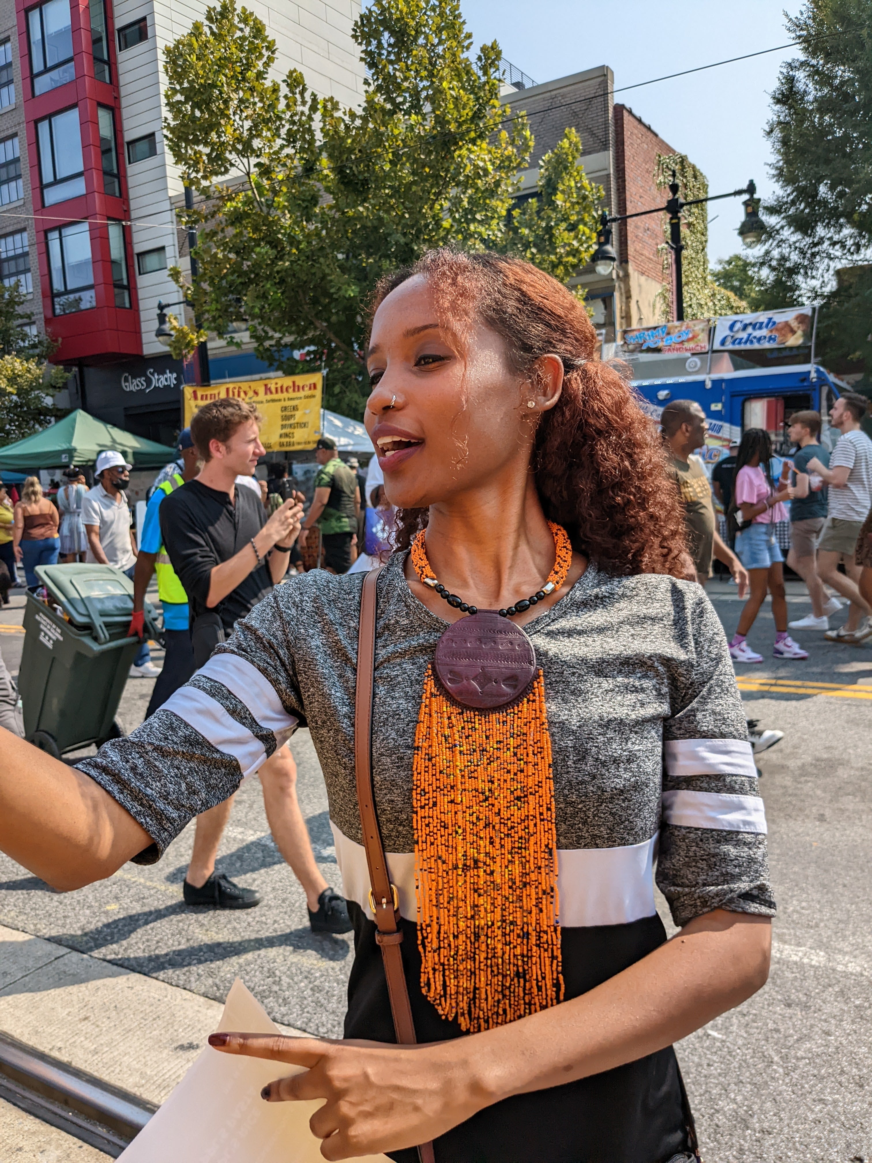 "My husband bought me a matching necklace, earrings and bracelet set for Christmas!!! I loved it! What was even more amazing was that a complimentary headband was included! I will be adorning these accessories for Imani - the seventh day of Kwanzaa!"