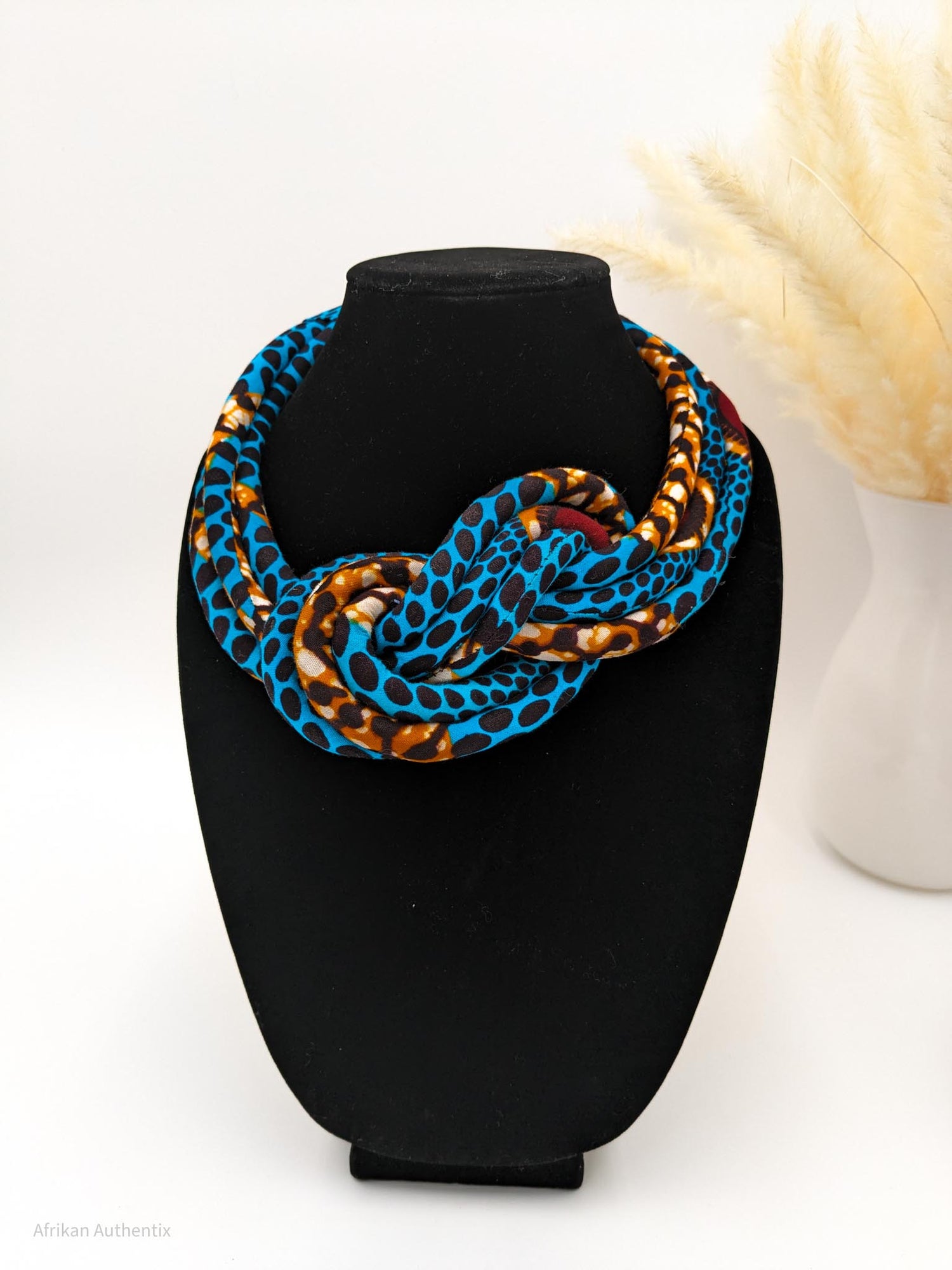 Handmade in Cameroon, these unique African print necklaces seamlessly blend traditional artistry...